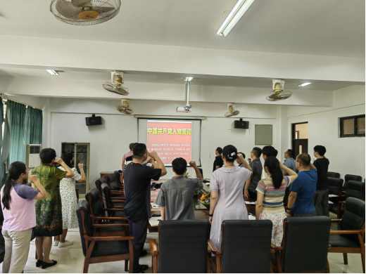 支部书记韩海军对周志和同志加入党组织表示祝贺,并希望他牢记入党初心,践行使命担当。随后,全体党员举起右拳重温入党誓词,深刻感受到了作为一名党员的责任和使命。
