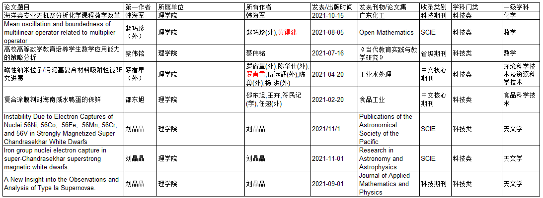 2021年度科研论文成果